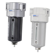 View our range of filters used to treat air in compressed air systems. Pneumatic air filters remove water, dirt and other harmful debris from an air system. Filters are often the first step in improving air quality. The required air purity will affect the filter selection. For common applications, filters that remove particles between 5 micron and 40 microns are sufficient. This means that they filter all particles larger than their rating, so see your equipment's specifications on debris size requirement. Choose the correct filter rating; over-specifying leads to a larger pressure drop and extra costs. Under-specifying leads to reduced reliability and life span of your system. Filters always cause a small pressure drop (higher for higher precision filters). This is often the reason that a filter is installed upstream of the pressure regulator.