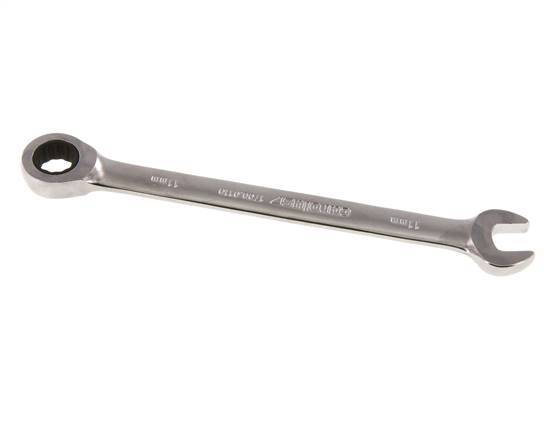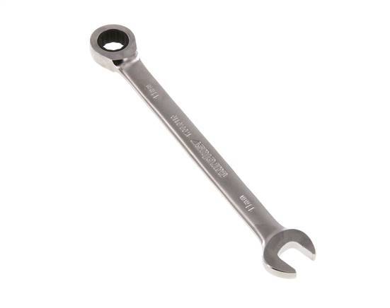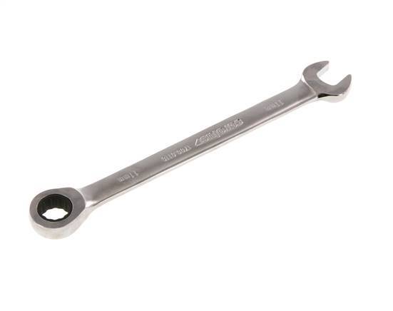 This is a Gedore Red open-end 11 mm wrench and 11 mm ratchet combination for everyday applications, loosening and fast tightening. The wrench is made of chrome-vanadium steel, it has a flat design, finely geared ratchet and very high torque transfer. To change the ratchet direction, rotate the key.