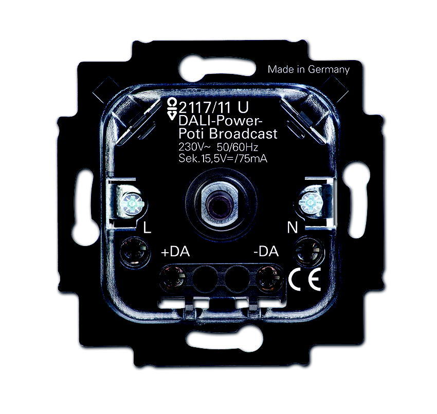 Abb Busch-Jaeger potentiometer vr lighting control system, operating mode rotary/pushbutton, frequency 50 - 60Hz, light value memory, flush-mounted, nom. (measuring) current 0.075A, rated voltage 230V, switchgear width 71mm, switchgear depth 50mm, switchgear height 71mm.