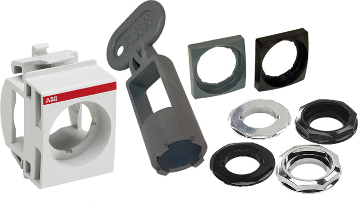 Protective yellow shroud designed for 40mm emergency and machine stop controls. Features anti-rotation lips and an integrated padlock slot for secure lockout capability. Includes water drainage design to prevent moisture ingress. Compatible with ABB safety switch systems and engineered for maximum reliability under demanding industrial conditions.