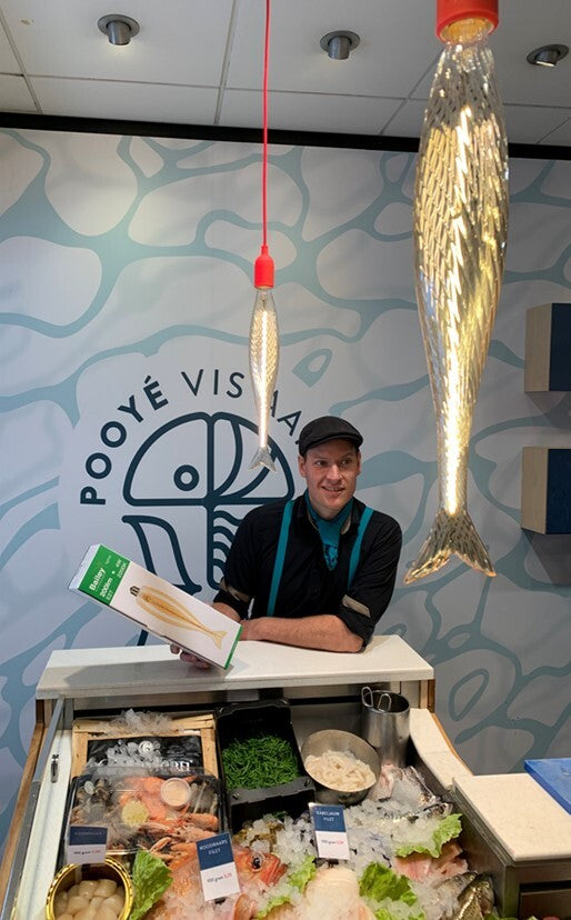 Decorative fish-shaped LED filament lamp with E27 base and gold coating. Features a distinctive scale pattern that evenly distributes warm 2200K light. Provides 240 lumens output while consuming only 4W (equivalent to 24W traditional). Compatible with LED dimmers and standard E27 sockets. Operating voltage 230-240V with 320-degree beam spread.