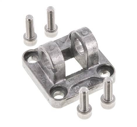 This steel female cap-end clevis mounting accessory can be mounted on ISO 15552 & ISO 21287 cylinders with 50 mm diameter using the 4 bolts (included). Use a 16 pin for the connection (available separately). Can be used to mount directly onto the cylinder or as counter hinge.
