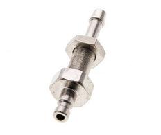 Easily mount a hose over the 4 mm hose pillar. Optionally, order a hose clamp for proper fixation of the hose. The plug has bulkhead thread to mount it to a panel. This coupling is suitable for vacuum applications. The operating pressure range is -0.95 to 35 bar. The plug is suitable for temperatures between -20 to 100°C. The rated flow rate is 165 l/min. The Nickel-plated brass housing has a nickel-plated surface protection.