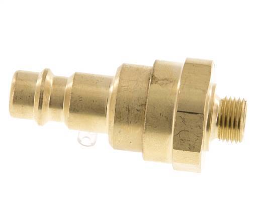 Brass DN 7.2 (Euro) air coupling plug with G 1/8 inch male threads. The plug has a check valve. The operating pressure range is 0.5 to 10 bar.