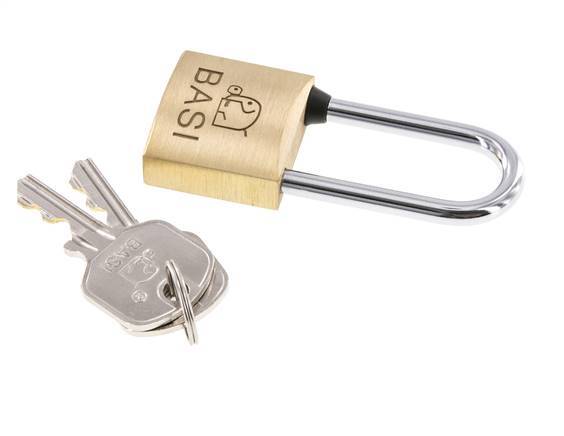 This is a 30 mm cylinder padlock with 2 keys. It has high bracket and simultaneous locking with closure A.