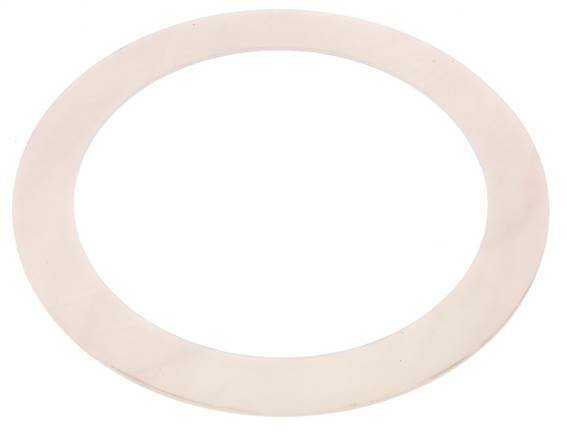 This flange seal has an inner diameter of 169 mm, an outer diameter of 218 mm and a thickness of 3 mm. The flange is made of silicone and can be used with foodstuffs. It can be used for DN 150 flanges up to PN 16.