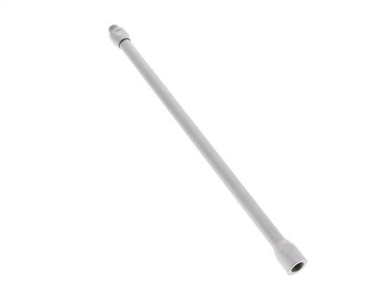 This is an anodized aluminum 300 mm straight extension tube for air blow guns. Equipped with M 12x1.25 male and female threaded ports.