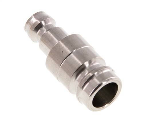 Stainless steel DN 9 mold coupling plug. This is an adapter from a 9 to 13 mm outer plug diameter. They are typically used for liquid lines to quickly connect and disconnect secure connections.
