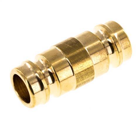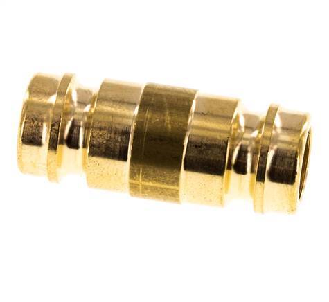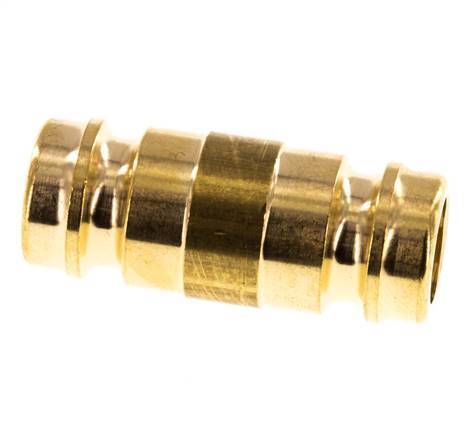 Brass DN 9 mold coupling plug. The plug outer diameter is 13 mm. They are typically used for liquid lines to quickly connect and disconnect secure connections.