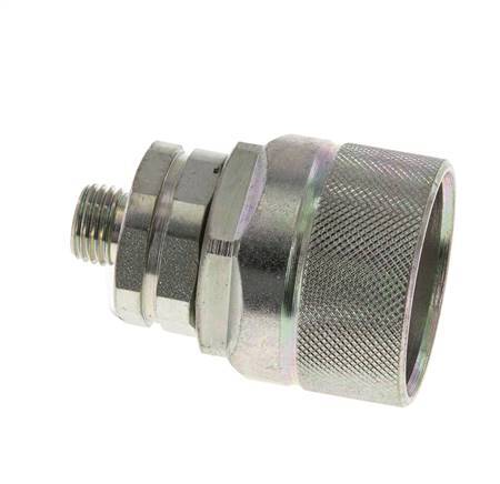 Quick fastener screw couplings shut off on the plug and the sleeve when uncoupled. The connection of the coupling sleeve and coupling plug is carried out via a screw connection with a hand nut. During the coupling procedure, the valve chamber is sealed before the valves open. When uncoupling, the valves are already closed, before the connection can be pulled out of the seal. Can be coupled up to max 50 bar under pressure.