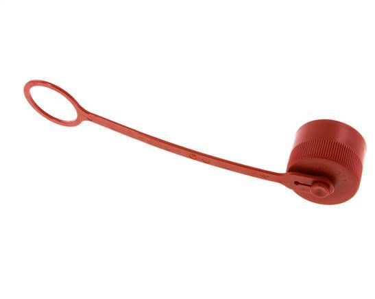 Dust protection cap for 48 mm hydraulic coupling socket. The cap protects the fitting from dust and impact, which reduces the chance of leakage and improves the life span. It is made of plastic.