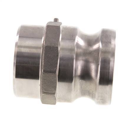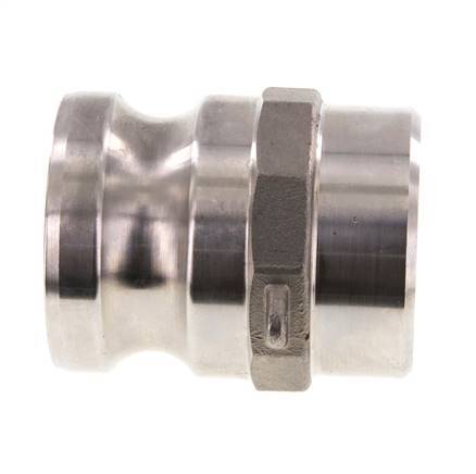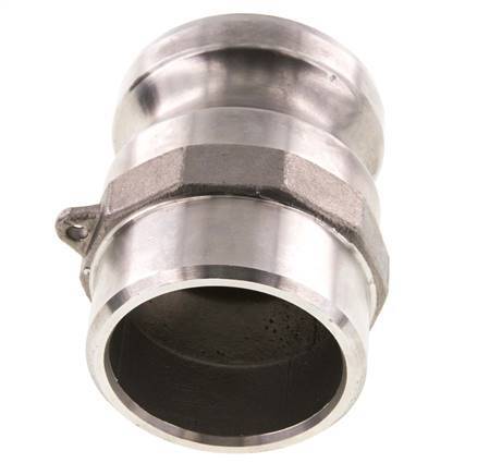Stainless steel DN 50 (2 inch) Camlock coupling adapter (male) with 60.3 mm weld end. This coupling is a Type F (AS) coupling (plug with weld end). The coupling is suitable for temperatures between -10 to 80 °C (14 to 176 °F). It has an NBR (nitrile rubber) seal. The coupling adheres to the MIL-C-27487 standard.