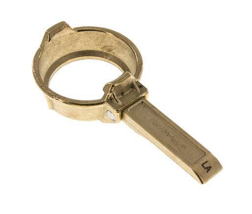 This is a DN 50 clamping ring with lever. The clamping ring is a part of an MK coupling. It is made of brass. The maximum pressure is 16 bar (232 psi).