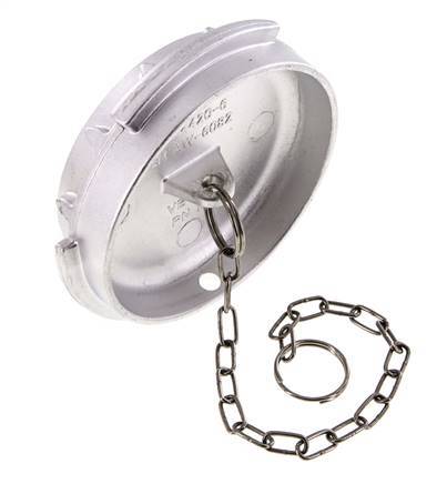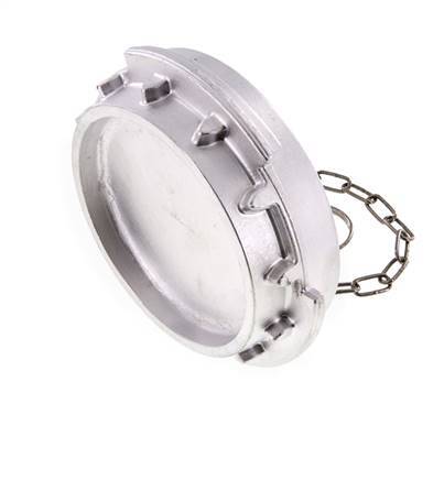 This is a DN 100 tank truck plug (VB-type). The VB plug is used for MK-type couplings. It is made of aluminium with an NBR (nitrile rubber) seal. The maximum pressure is 16 bar (232 psi). The coupling is suitable for temperatures between -20 to 80 °C (-4 to 176 °F).