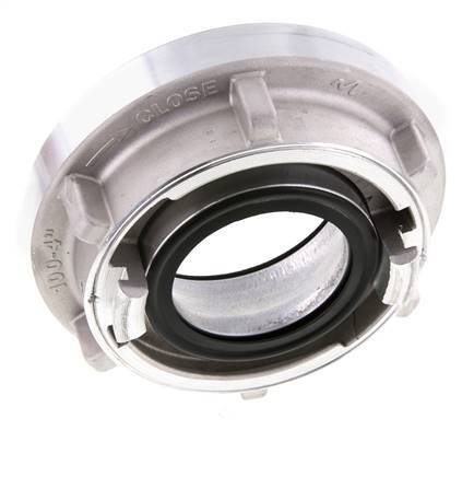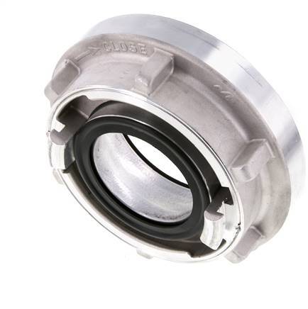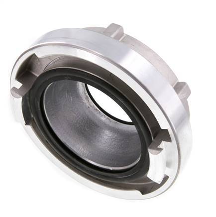 This is a 100 to 75-B Storz reducer fitting with a lug distance of 115 mm and 89 mm respectively. It is made of forged aluminum with an NBR (nitrile rubber) seal. The maximum operating pressure is 16 bar (232 psi). The coupling is suitable for temperatures between -40 to 110 °C (-40 to 230 °F).