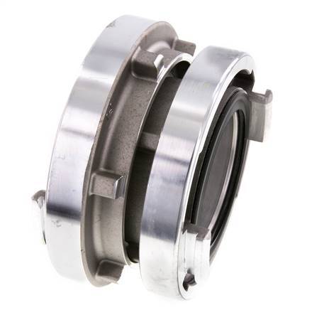 This is a 100 to 90 Storz reducer fitting with a lug distance of 115 mm and 105 mm respectively. It is made of forged aluminum with an NBR (nitrile rubber) seal. The maximum operating pressure is 16 bar (232 psi). The coupling is suitable for temperatures between -40 to 110 °C (-40 to 230 °F).