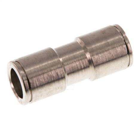 This is a 2 connection straight push-in fitting. Push-in fittings are ideal to create fast and reliable connections for pneumatic hoses. Both push-in connections have a 10 mm size. The body is made of brass. The connection ports are made of nickel plated brass. The seal material is NBR. The operating pressure range is -0.98 to 16 bar (-14 to 232 psi), making it suitable for vacuums. The fitting is suitable for temperatures from -20 to 80 °C (-4 to 176 °F).