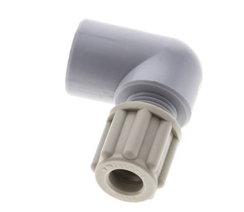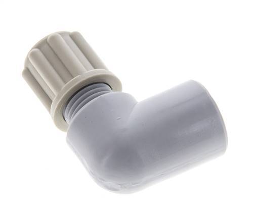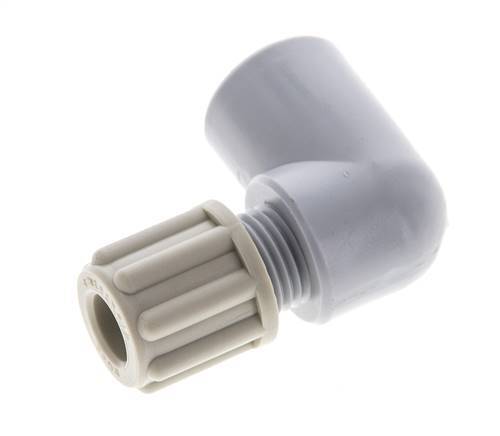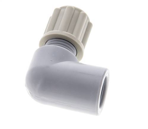 This pa elbow screwed-on screw connection is designed with one female threaded connection and one compression ring connection port. Connection 1 is a
