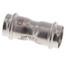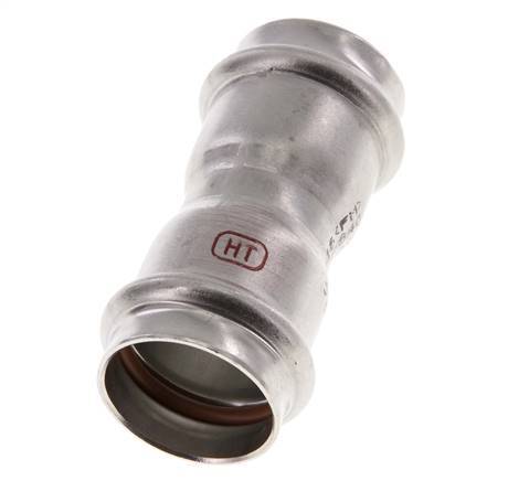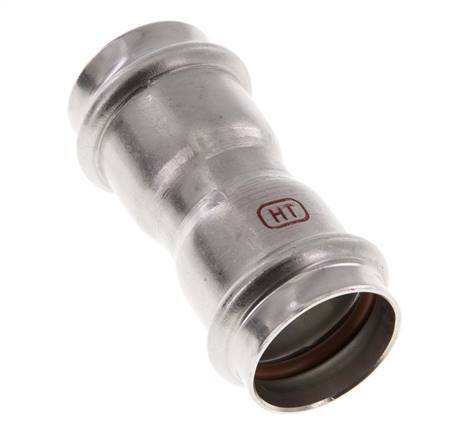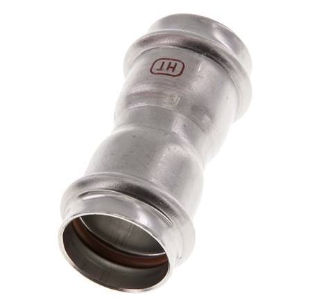 This is a straight press fitting made from stainless steel 1.4404. The fitting has two female press ports. Connection 1 and 2 are designed for a tube with an outer diameter of 28 mm. The fitting has an FKM sealing ring. The maximum pressure is 25 bar (363 psi). The fitting is suitable for temperatures from -20 to 200 °C (-4 to 392 °F). Temporary, the max temperature can be +280 °C (536 °F). The fitting length is 78 mm.