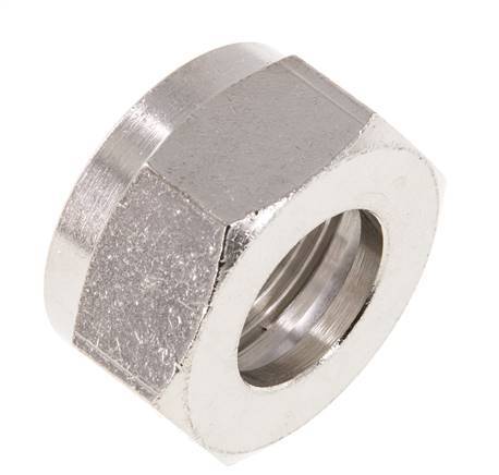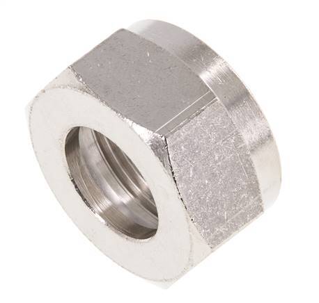 This brass union nut (female threads) is designed to be used with a cutting ring fitting. Suitable for pipes with an outer diameter of 18 mm. In accordance to the DIN 2353, it has an L (series) load class. The maximum pressure is 65 bar (943 psi). The nut is suitable for temperatures from -60 to 300 °C (-76 to 572 °F). It is made in accordance with the ISO 8434-1.