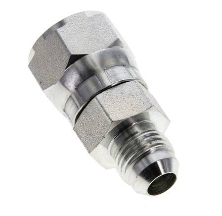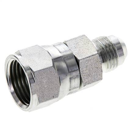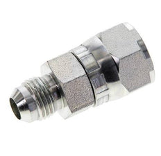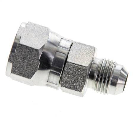 This is a JIC reducing nipple with UNF threads. Zinc-coated steel fittings provide some corrosion resistance, but are not meant for corrosive environments. The maximum operating pressure is 275 bar (3863.75 psi).