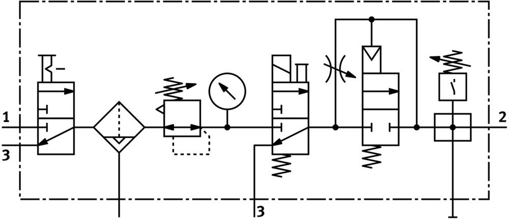 This air preparation unit combines essential pneumatic components in a compact package, offering efficient air treatment for industrial applications. With a G1/2 pneumatic connection and a standard nominal flow rate of 1740 l/min, it provides robust performance for various systems. The unit features a pressure regulation range of 2.5 - 12 bar and a 40 µm grade of filtration, ensuring clean and properly conditioned air supply. Its integrated design simplifies installation and maintenance, making it an ideal choice for technical buyers seeking a reliable air preparation solution.