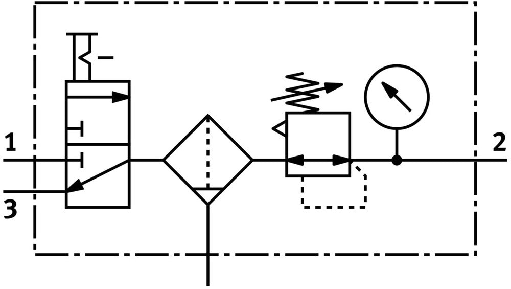 This air preparation unit combines a shut-off valve, filter regulator, and pressure gauge in a compact package. With a G1/4 pneumatic connection and a standard nominal flow rate of 1900 l/min, it offers efficient air management. The unit provides precise pressure regulation between 0.5 and 12 bar, while its 40 µm filtration grade ensures clean air output. Designed for reliability and ease of integration, this unit is suitable for various industrial pneumatic applications requiring controlled and filtered compressed air.
