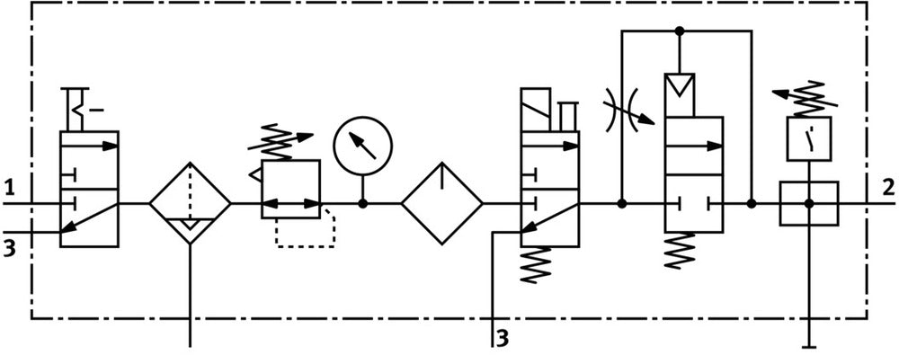 This air preparation unit combines essential pneumatic components in a compact package, offering efficient air treatment for industrial applications. With a G1/4 pneumatic connection and a standard nominal flow rate of 1060 l/min, it provides reliable performance for various pneumatic systems. The unit features a pressure regulation range of 2.5 - 12 bar and a 40 µm grade of filtration, ensuring clean and properly conditioned air supply. Its integrated design simplifies installation and maintenance, making it an ideal choice for technical buyers seeking a comprehensive air preparation solution.