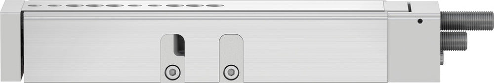 The Mini slide is a compact, double-acting actuator with a 16 mm piston diameter and 100 mm stroke. It delivers a theoretical force of 121 N at 6 bar when advancing. Featuring elastic cushioning rings at both ends with fixed stops, this slide ensures precise movement control. The ball-bearing guide provides high load capacity and positioning accuracy, making it suitable for applications requiring precise linear motion. Compatible with proximity sensors for position sensing, this actuator offers versatility in various industrial automation setups.