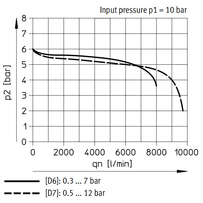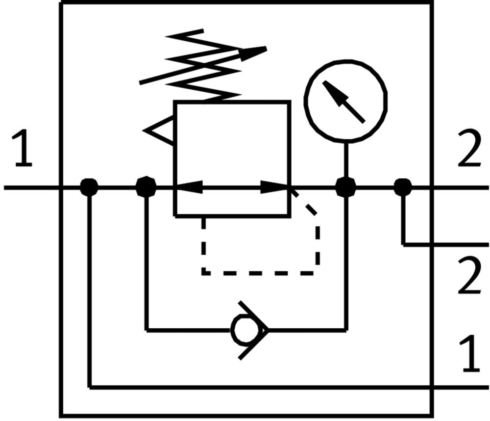 This pressure regulator offers precise control with a regulation range of 0.3 to 7 bar and a maximum pressure hysteresis of 0.25 bar. It features a G1/2 pneumatic connection and a standard nominal flow rate of 6300 l/min. The regulator's design includes a lockable rotary knob for secure settings and an integrated return flow option. Its 62 mm width allows for compact installation in regulator manifolds with independent pressure adjustments, ensuring efficient compressed air preparation in various industrial applications.