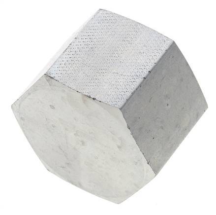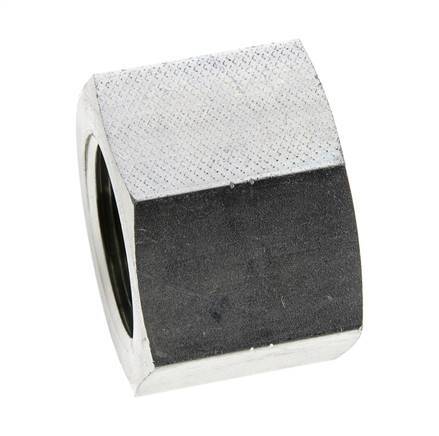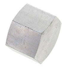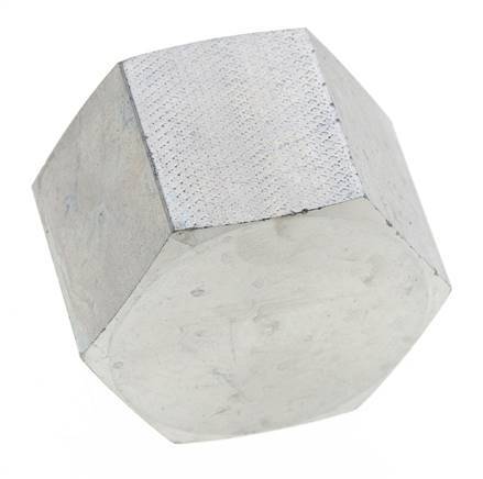 This end cap is designed with a female threaded connection. Connection 1 has female NPT 1 inch threads. It is an end cap, so it has no output port. It is made out of steel and is galvanic/electrolytic zinc plated for surface protection. At 20 °C (68 °F), it can handle a maximum pressure of 140 bar (2031 psi).