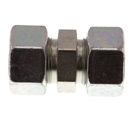 This straight screw connection is designed with two cutting ring connection points. Connection 1 is a 25 mm cutting ring. Connection 2 is a 25 mm cutting ring. It is a straight fitting. It is made out of steel and is galvanic/electrolytic zinc plated for surface protection. It is suitable for media within a temperature range of -40 °C to 120 °C (-40 °F to 248 °F). At 20 °C (68 °F), it can handle a maximum pressure of 400 bar (5802 psi). According to the DIN 2353, it has an S (heavy) load class. It is made in accordance with the DIN EN ISO 8434-1 (DIN 2353).