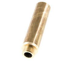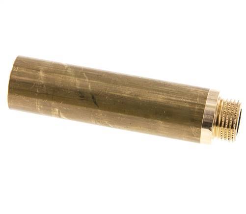 This extension is designed with male and female threads. Connection 1 has female G 1/2 inch threads. Connection 2 has male G 1/2 inch threads. It is a straight fitting. It is made out of brass. It has a total length of 100 mm. It is made in accordance with the DIN 3523.