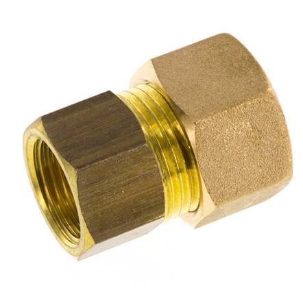 This straight screwed-on screw connections is designed with female threads and a compression ring connection point. Connection 1 has female G 3/8 inch threads. Connection 2 is a 14 mm compression ring. It is a straight fitting. It is made out of brass. It is suitable for media within a temperature range of -60 °C to 300 °C (-76 °F to 572 °F). At 20 °C (68 °F), it can handle a maximum pressure of 89 bar (1291 psi). It is made in accordance with the DIN EN 1254-2. They have a 3-part design.