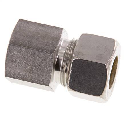 This stainless steel straight screwed-on screw connections is designed with female threads and a compression ring connection point. Connection 1 has female G 3/4 inch threads. Connection 2 is a 20 mm compression ring. Suitable for temperatures from -60 °C to 400 °C (-76 °F to 752 °F). Max pressure of 400 bar (5802 psi). Rated for an S (heavy) load class. It is made in accordance with the DIN EN ISO 8434-1 (DIN 2353).