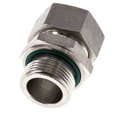 This stainless steel straight screw in connection is designed with male threads and a cutting ring fitting connection. Connection 1 has male G 1 inch threads. Connection 2 is a 28 mm cutting ring. The sealing is FKM / PTFE. Suitable for temperatures from -20 °C to 200 °C (-4 °F to 392 °F). Max pressure of 160 bar (2321 psi). Rated for an L (light) load class. It is made in accordance with the DIN EN ISO 8434-1 (DIN 2353).