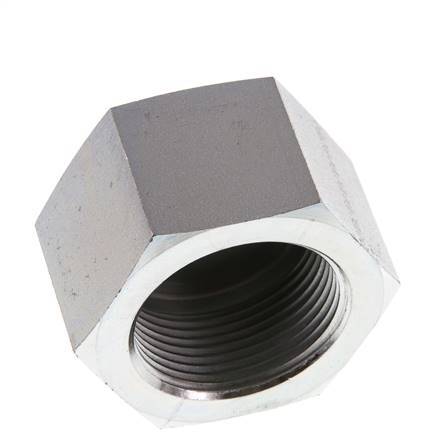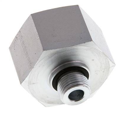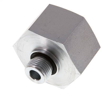 This threaded reduction is designed with cylindrical male and female threads. Connection 1 has male G 1/2 inch threads. Connection 2 has female G 1 1/4 inch threads. It comes with a gasket to ensure a proper seal can be made. It is a straight fitting. It is made out of steel and is galvanic/electrolytic zinc plated for surface protection. It has a elastomer seal. At 20 °C (68 °F), it can handle a maximum pressure of 400 bar (5802 psi).