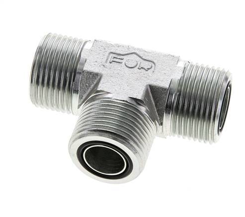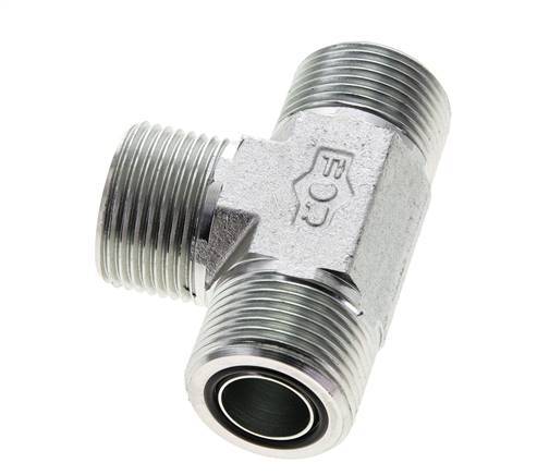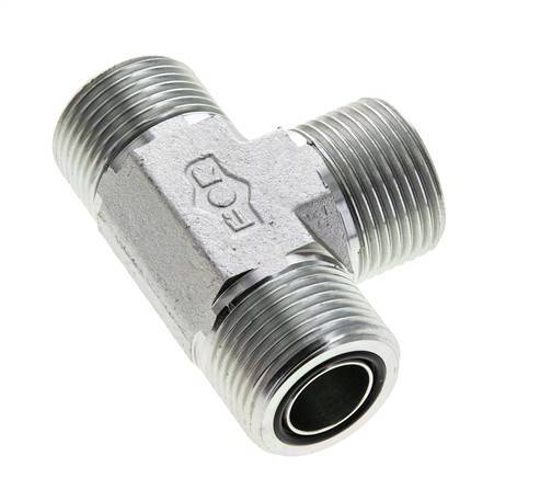 This T-piece is designed with three male ORFS connection ports in the shape of a T. Connection 1 has ORFS male UN 1-3/16inch-12 threads. Connection 2 has ORFS male UN 1-3/16inch-12 threads. Connection 3 has ORFS male UN 1-3/16inch-12 threads. It comes with a gasket to ensure a proper seal can be made. It is made out of steel and is galvanic/electrolytic zinc plated for surface protection. At 20 °C (68 °F), it can handle a maximum pressure of 400 bar (5802 psi).