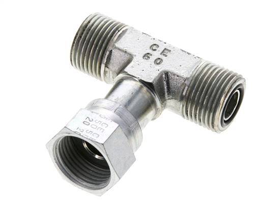 UN 13/16''-16 M/F Zinc plated Steel Tee ORFS with union nut 630 Bar - Hydraulic