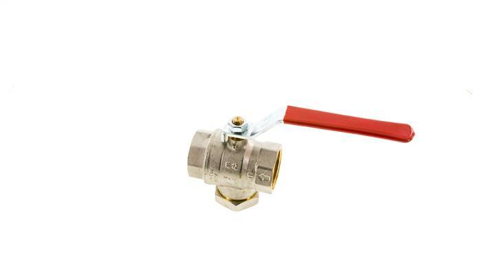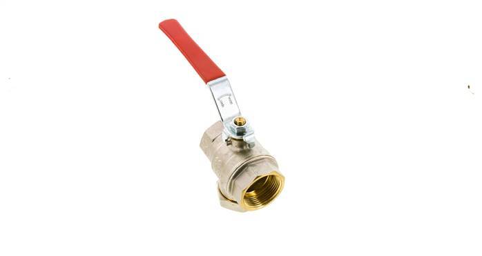 2-Way brass ball valve with integrated strainer for media filtering with G 1-1/4 inch ports and a handle for on/off flow control. 28 mm nominal diameter and a maximum pressure of 20 bar (290 psi). The valve can be used within a temperature range from -20 to 100 °C (-4 to 212 °F). Nickel-plated brass housing, brass ball and PTFE/FKM seals.