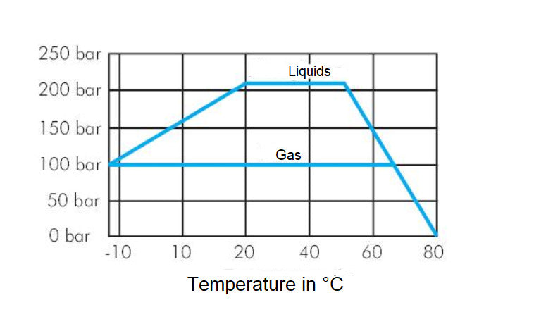 The housing of the valve is made of nickel-plated brass, the ball is made of chromium-plated brass and the seals are made of PTFE/FKM/POM. The valve is suitable for water and hydraulic oil up to a maximum pressure of 210 bar or 3046 psi and compressed air (up to 100 bar or 1450 psi). The valve can be used within a temperature range from -10 to 80 °C (14 to 176 °F).