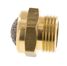 This compact pneumatic muffler effectively reduces noise of air-powered tools, valves, and cylinders exhausts. Made from a brass body and a stainless steel wire mesh sound absorber. The muffler includes a 19 mm hexagonal fitting for easy installation and removal. It features G 3/8 inch male threads, and a sound absorber length of 12 mm, which is defined as the length protruding when the muffler is fully installed.
