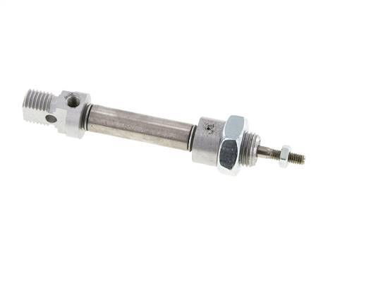 This is a single acting ISO 6432 mini pneumatic cylinder with a Ø8 mm bore and 10 mm stroke. The operating pressures is 1 to 10 bar (14.5 to 145.04 psi). The cylinder is self-lubricating and has a magnetic piston for position sensing. The end rod thread size is M4. Wide range of mounting accessories available. The cylinder head and foot are made from aluminum, the cylinder tube is made from 304 stainless steel and the piston rod is made from 303 stainless steel. Suitable for temperatures of -20 to 80 °C.