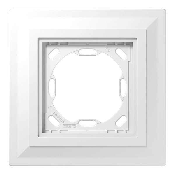 The Jung central and flush-mount box elevation rim measures 130x130mm (length x breadth) and has a leveling height of 12.5mm. It is rectangular in shape and has diverse applications. The LS-ZERO mounting adapter has zero millimeters and is single-type, providing a practical solution for installation needs. Both items are designed for in-wall installation, bringing a functional and streamlined aesthetic to any setup.