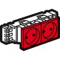Legrand Mosaic socket outlet (wall socket switchmaterial), plastic, red, wall outlet, design perimeter, degree of protection (IP) IP40, cover central plate, protection contact, surface finish glossy, connection type plug-in terminal, 2 units, with increased touch protection.