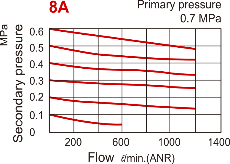 This filter regulator (FR) combines two functions. The filter removes water, dirt and other harmful particles larger than 5 μm for your air system. The pressure regulator adjusts the pressure continuously to a stable level, even when the input pressure varies. The level can be adjusted between 0.5 - 8.5 bar. This model has G 1/4" ports. The maximum flow rate is 1200 l/min. Please note that the maximum flow rate alone doesn’t provide enough information to properly size your filter regulator. Use the flow curve to determine if the pressure drop (droop) within your expected flow rate range is acceptable. The flow curve shows the flow rate for a set input pressure with multiple output pressures. For each output pressure, it can be seen how the pressure changes with increasing flow rate. It is recommended to use the device in the flat range of the curve, and not on the beginning or the end of the curve. Note that the pressure regulator controls the output pressure, not the flow rate. The output pressure can be adjusted by pulling the hand wheel up and twisting. The output pressure can be locked after adjustment by pushing the hand wheel back in. The max input pressure is 10 bar and the temperature range is between -5 and 60 °C. The filter is rated for 5 microns, meaning it will not allow contaminants larger than this through. To empty, it has an auto condensate drain with a drain capacity of 35 cm3. The housing material is made out of aluminium and the filter has a bowl made of Polycarbonate (PC). It has a mounting bracket to mount it to a wall or your machine.