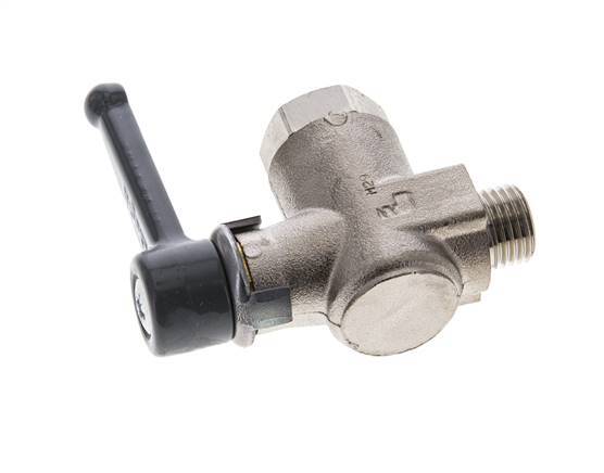 The housing of the valve is made of nickel-plated brass, the ball is made of polished brass and the sealings are made of PA/NBR. The valve is suitable for compressed air, water and oils up to a maximum pressure of 20 bar or 290 psi. The valve can be used within a temperature range from -20 to 80 °C -4 to 176 °F.