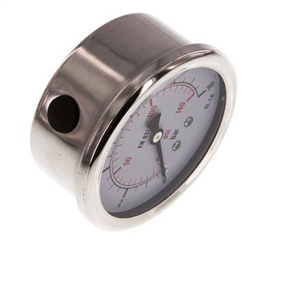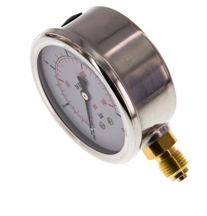 0..10 Bar (0..145 psi) Glycerin Pressure Gauge Below Stainless steel/Brass 63 mm Class 1.6
