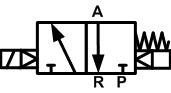 A 3/2 way valve has three ports and two states. This valve can be used for example to control a single acting cylinder. One port of the solenoid valve connects to the cylinder, this port is used for both filling and venting the cylinder. The valve therefore has one port for air supply (port P), one port to vent (port R), and one port for the connection with the cylinder (port A).