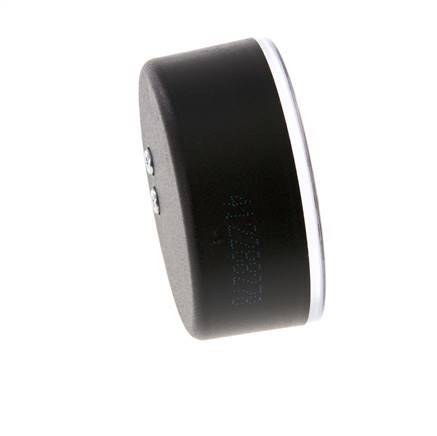 The pressure gauge MW01063PV is designed for gas and liquid media and measures pressures within the range of 0 to 10 bar (0..145 psi). The gauge has two measurement scales in bar (black) with scale division of 0.5 and in psi (red). The measurement accuracy class is 2.5 (± 2.5 % maximum deviation). The gauge body is made of plastic, the connection and indicator are made of brass. Please make sure that your medium is compatible with brass. The connection point for this manometer is located below the gauge. As a rule of thumb, please select a pressure gauge that has a rating scale of at least 25% higher than the maximum operating pressure.